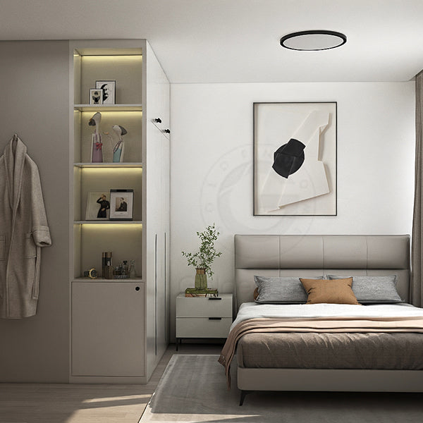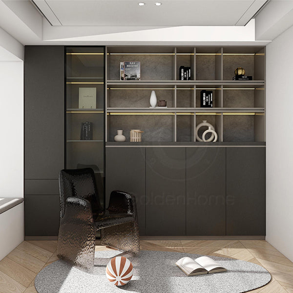 Adopting a simple layout with embedded light strips to highlight layers and showcase the texture of the boards.